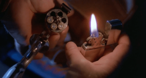 But the pièce de résistance is Blood Simple‘s climax. Abby and Ray’s relationship being threatened in the daylight is made explicit, as Visser hunts the pair (half-successfully) with the aid of a single lightbulb: