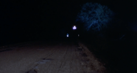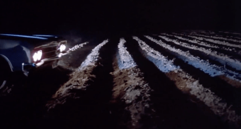 Another pair of headlights approaching down the freeway draws Ray’s attention in this scene, and ours, in a precursor to a nearly-identical scene in Fargo: