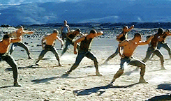 But Claire Denis presents that system in a wholly different light than is typical of the traditional war film. We’re mostly referring to the American war film here, though the tenets are similar worldwide. Chief among them is the Us vs. Them mentality, often tied to a sense of nationalism or patriotism. Even a war film like Christopher Nolan’s Dunkirk, in which not a single Nazi is actually shown, still results in a strong swell of pride in the British homeland. Not only does Beau travail entirely disregard the classical “enemy” of the war film, but the Foreign Legion itself — an infantry branch of the French Army — is only tenuously tethered to France. Many of the legionnaires hail from other countries, and a notable scene follows one legionnaire teaching another to speak basic French. While these men are technically bound by the same system, Beau travail inexorably sides with them as people, not simply as members of the Legion.